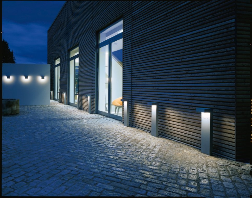 Vorbei die Zeiten, in denen Gäste nach der Türklingel fahnden und Bewohner im Dunkeln nach dem passenden Schlüssel tasten mussten. Haus und Garten sind heute illuminiert. Optimal arrangiert, schaffen Außenleuchten eine warme Atmosphäre, Orientierung und Sicherheit. Klassischerweise markieren Sockel- und Pollerleuchten Aufgänge, Stufen und Wege. Und ihre aktuellen Vertreter können sich ob ihres Designs auch bei Sonnenschein sehen lassen.