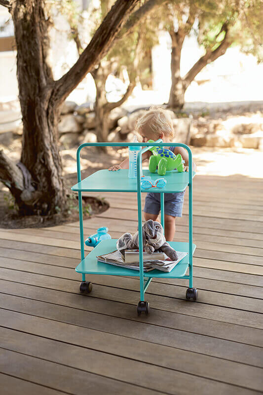 …auf dem mobilen Tabletttisch Alfred, ebenfalls aus der Feder von Pascal Mourgue, kann man auch prima sein Hab und Gut zum Pool karren…