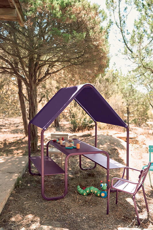 …der kleine Frühstücksplatz lässt sich dank der Verlängerungen im neuen Metalltisch Ribambelle ruckzuck zur Familientafel vergrößern…