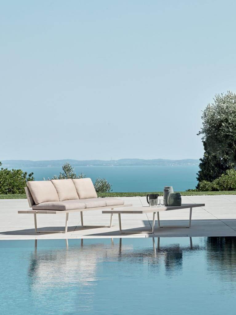 Eine der wohl modernsten Daybeds unter der Sonne: Monica Armanis Pavilion für Tribù mit seiner geometrisch raffinierten Silhouette…