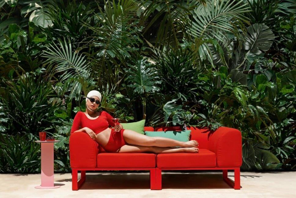 …Philippe Starck hingegen steuert ein Sofa mit dem Namen Oh, it rains! und opulenter Rückenlehne bei. Diese lässt sich als Wetterschutz umklappen
