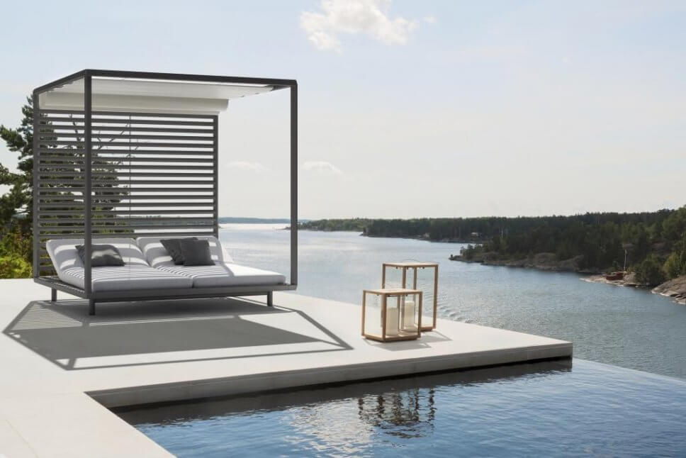 Solanas, das elegante Alumöbel von Daniel Germani, bietet Gandia Blasco in etlichen Varianten – vom Separée übers Daybed bis zur Anrichte…