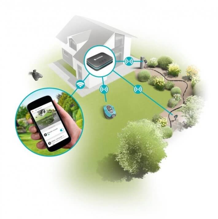 Das Gardena smart system sorgt dafür, dass sich der Gartenbesitzer sein kleines Paradies in die Hosentasche stecken und überall mitnehmen kann. Per App auf dem Smartphone informiert er sich in der Ferne über die aktuellen Umgebungsbedingungen des heimischen Grüns mit Parametern wie Bodenfeuchte, Lichtverhältnisse, Erdtemperatur und reagiert mit nur einem Klick – gießt die Rosenbeete oder lässt den Mähroboter seine Bahnen ziehen…