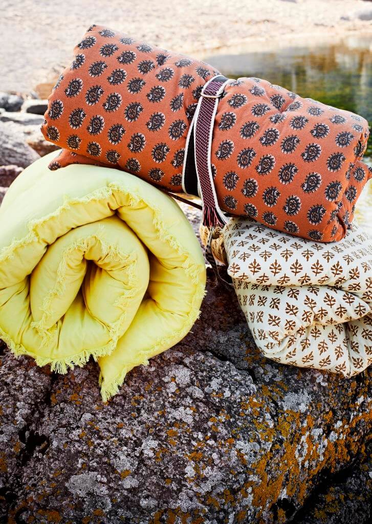 …aufgerollt und mit einem Gurt festgezurrt, lassen sich die weichen Unterlagen auch prima zum Sonnenbad mitnehmen…
