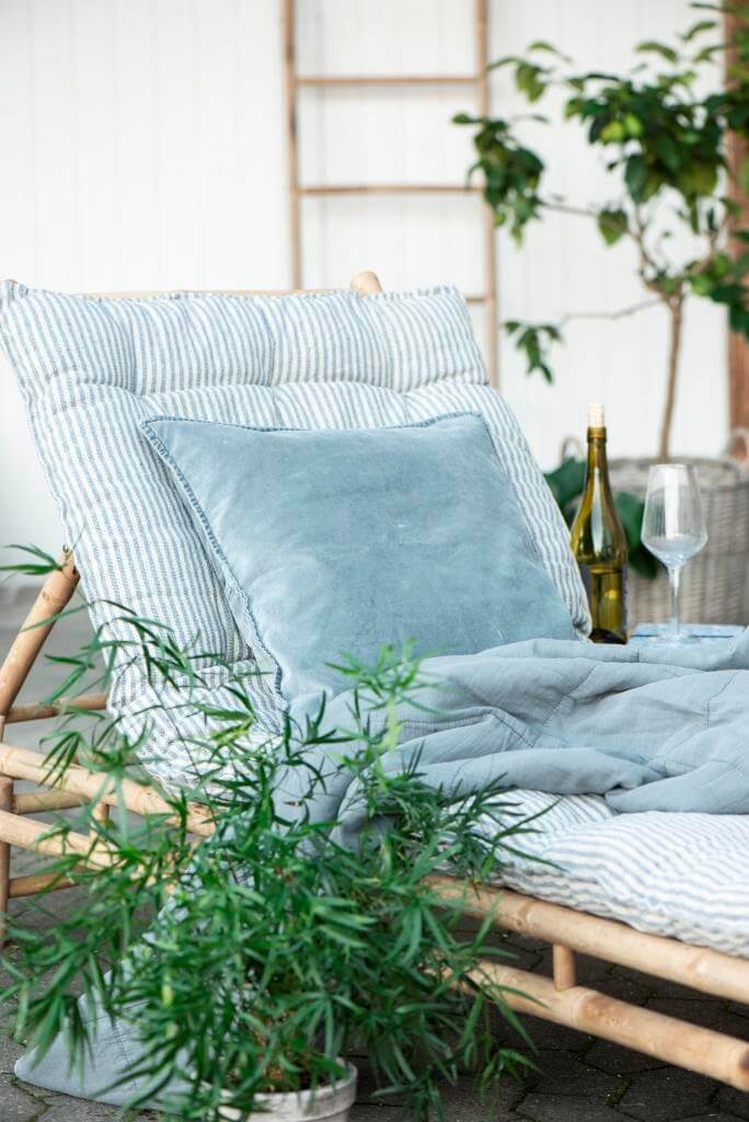 In schönste Aquatöne taucht Ib Laursen seine Kissen, Plaids und Quilts fürs Open Air-Wohnzimmer…