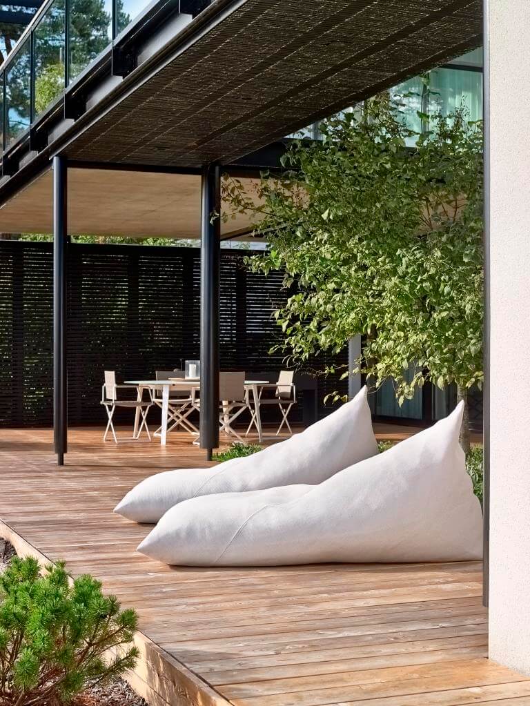 Von Haus aus bestimmt Klarheit die Textilien von Woodnotes. Daran hält auch Ulla Koskinens herrlich bequemer Sitzsack Roo fest…