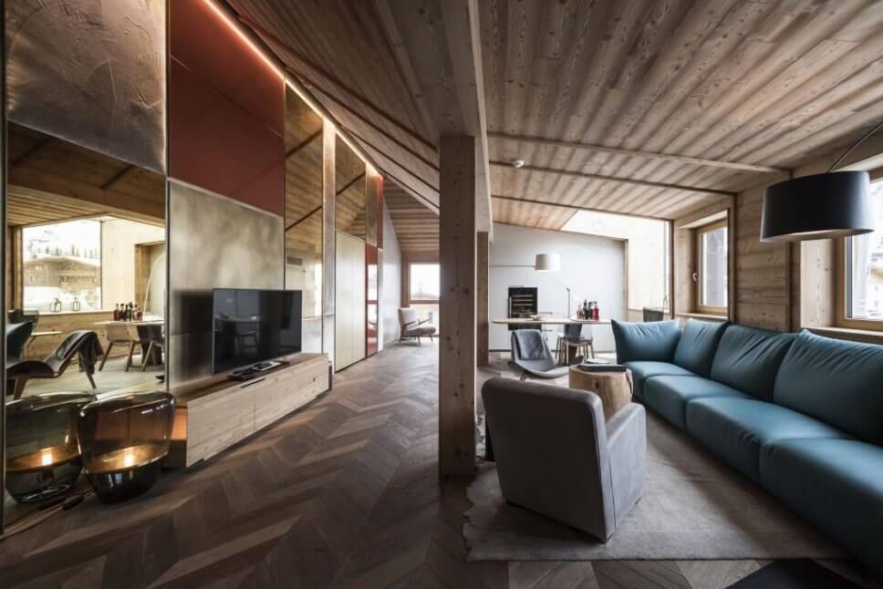 Auf 164 Quadratmetern Fläche definieren die Architekten Tiziano Vudafieri und Claudio Saverino ein neues Wohnkonzept im Gleichgewicht zwischen Bergatmosphäre und zeitgemäßem Luxus…