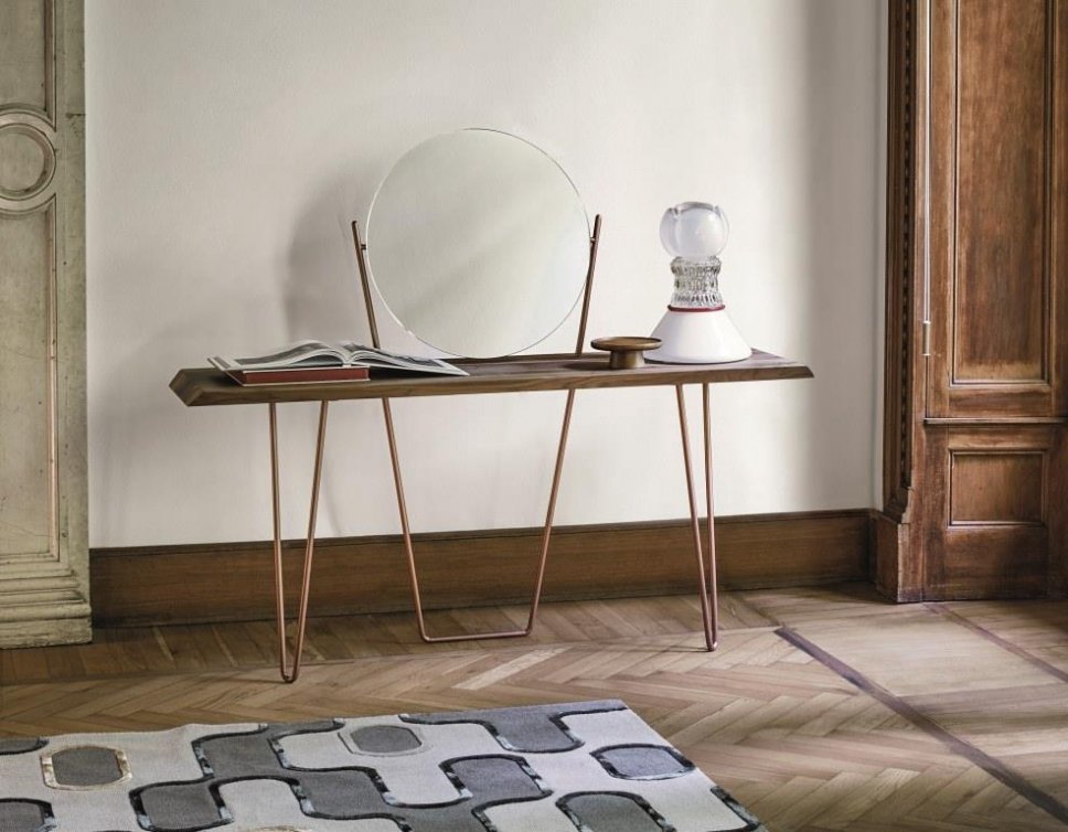 Die Spiegelkonsole Coseno fasst Designer Mauro Lipparini in einen eleganten Rahmen aus Rundrohr…
