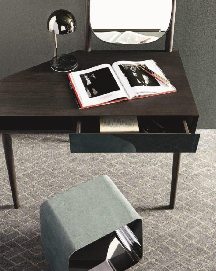 Einst Pflicht für modebewusste Damen im Biedermeier, dann als Kleinmädchentraum abgetan, heute das It-Piece für Fashionistas – der Schminktisch. Schon in der Versenkung verschwunden, erwecken just immer mehr Hersteller das Mobiliar fürs Makeup aus dem Dornröschenschlaf. Die Frisierkommode von einst erlebt ihr Revival selbstredend in modernem Look, aber wie gewohnt mit Spiegel sowie Fächern und Schüben zum Verstauen von Kosmetika, Bürsten, Schmuck und Accessoires.