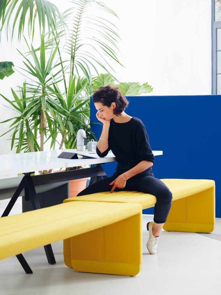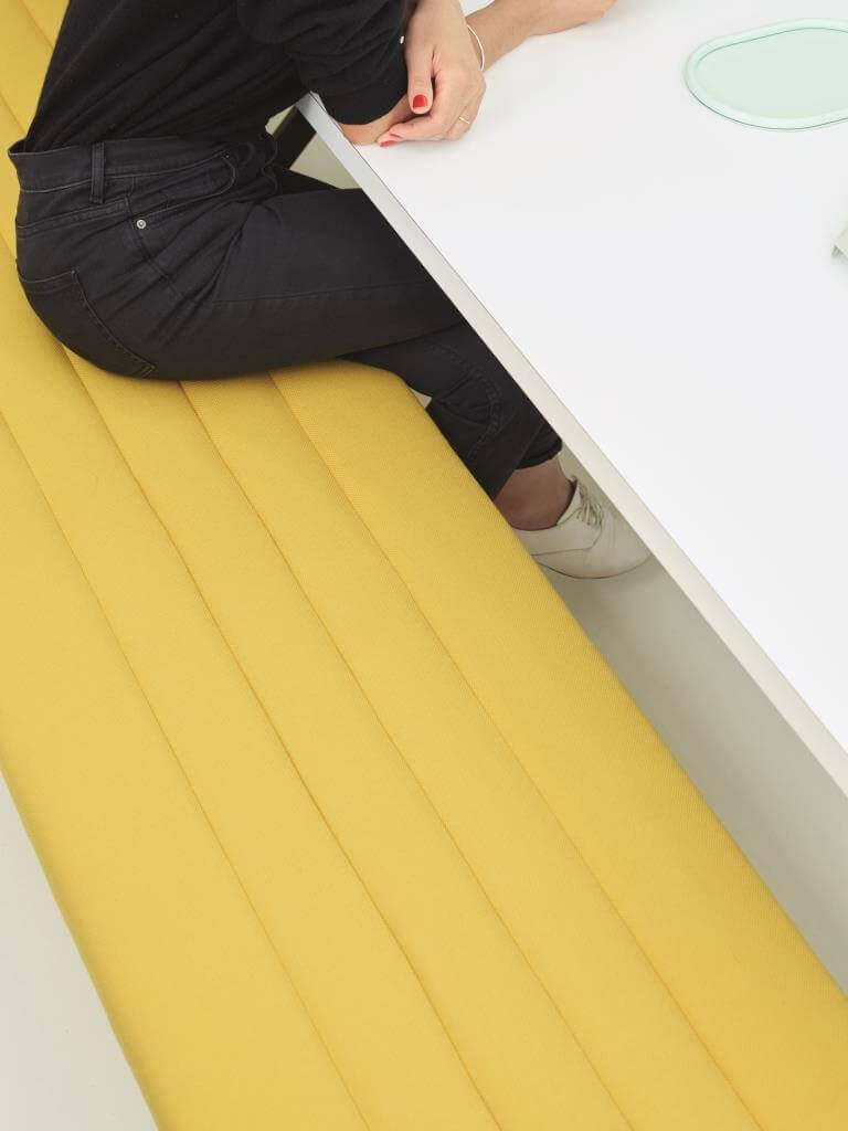 …die Polsterbank lässt sich nach Belieben um etliche Elemente verlängern und steht im Office ebenso gut wie in der Wohnküche
