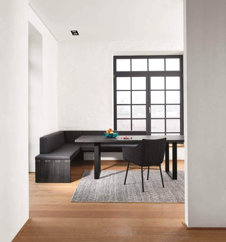 Die klassische Eckbank interpretiert Janua mit der teilgepolsterten SC 02 absolut zeitgemäß aus erlesenen Hölzern