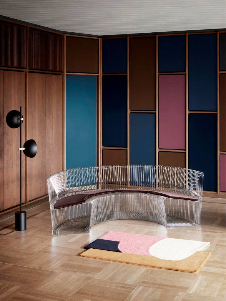 …Montana fertigt Pantonova quasi als Erweiterung der Panton Wire Regale, dazu Kissen in Leder, Samt oder Stoffen aus dem Hause Kvadrat