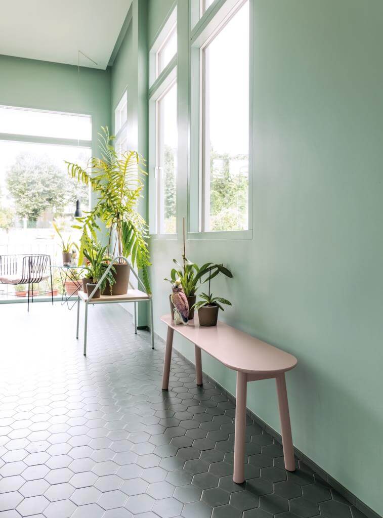 …Schönbuch lackiert die archaische Holzbank der gebürtigen Amerikanerin in vielen matten Lackfarben