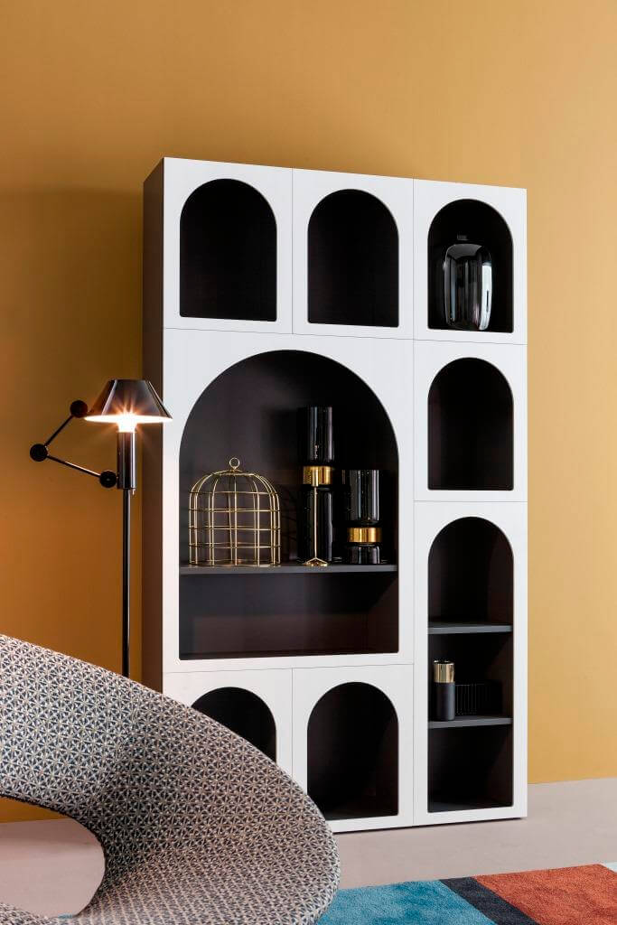 Auf den ersten Blick mutet es wie ein klassisches Bücherregal an, vielleicht ein wenig unaufgeräumt. Doch Willkür ist Designer Giuseppe Bavuso wahrlich nicht zu unterstellen. Shanghai von Alivar wirkt selbst ohne Inhalt nie langweilig
