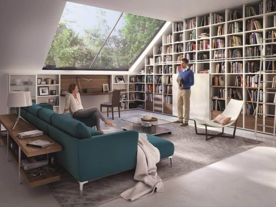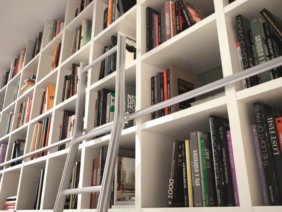 …es lässt sich schier endlos erweitern. Und auf der verschiebbaren Leiter kommt der Bücherfreund hoch hinaus
