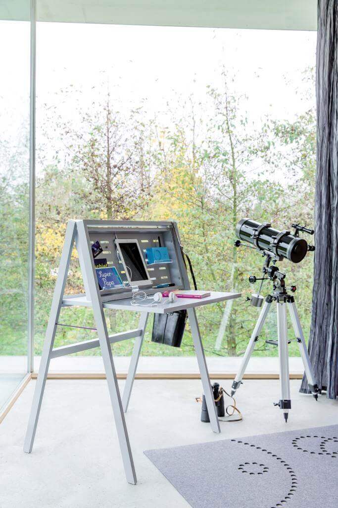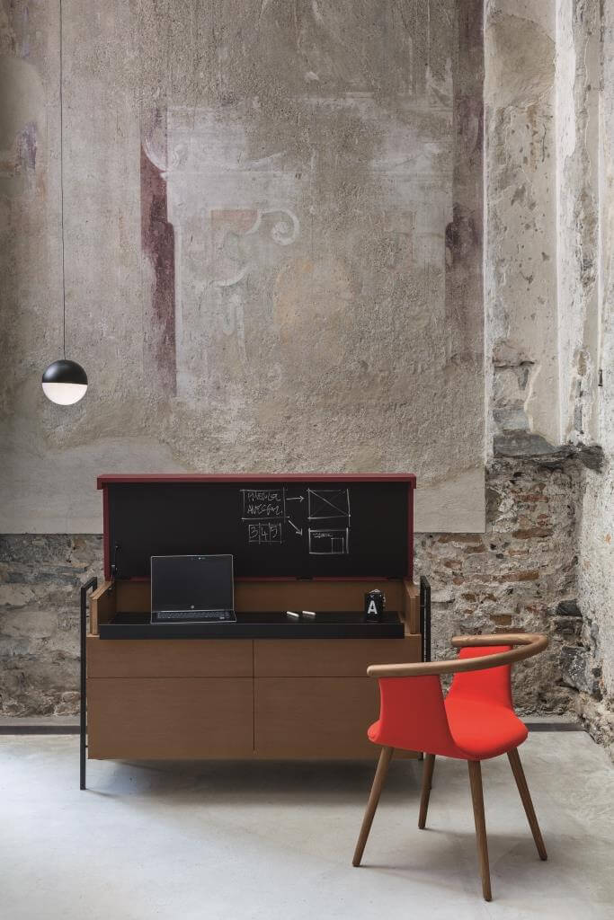 Mit einem Handstreich ist alles weg: Arbeit und Büroaccessoires verschwinden bei Bross‘ Geta von Baldessari e Baldessari einfach unter der Klappe