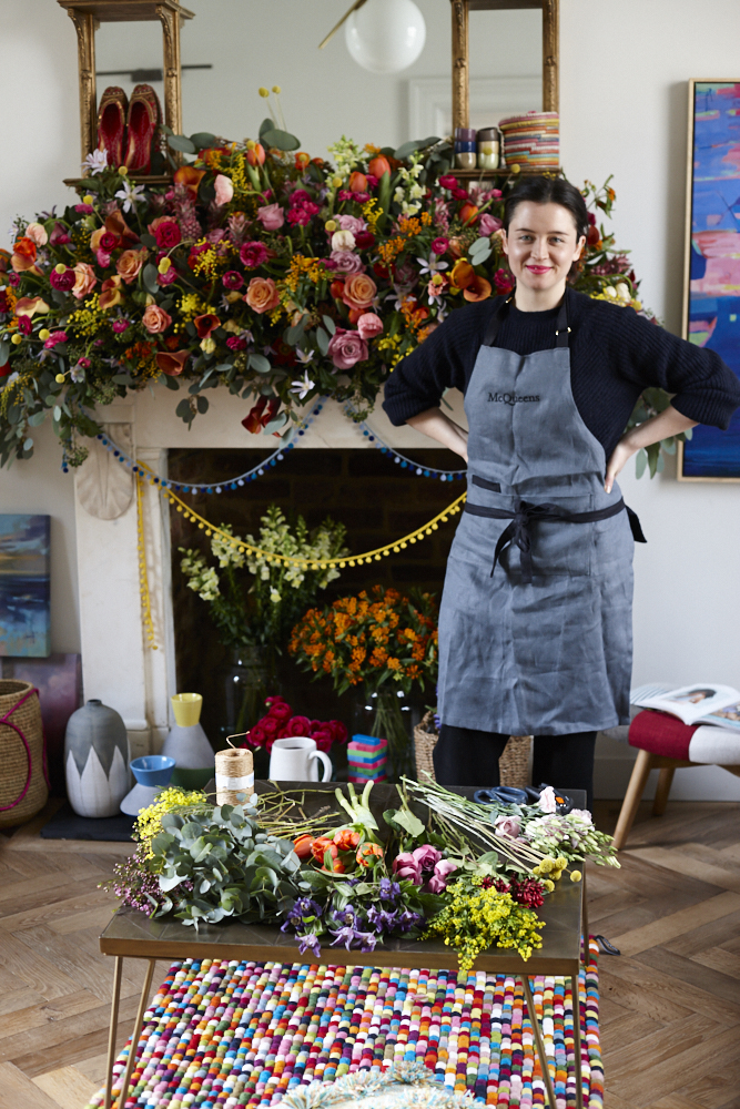 Farben machen fröhlich, Blumen glücklich: McQueens Flowers-Floristin Selina Kerley verwandelt den Kaminsims in eine üppige Blumenwiese…