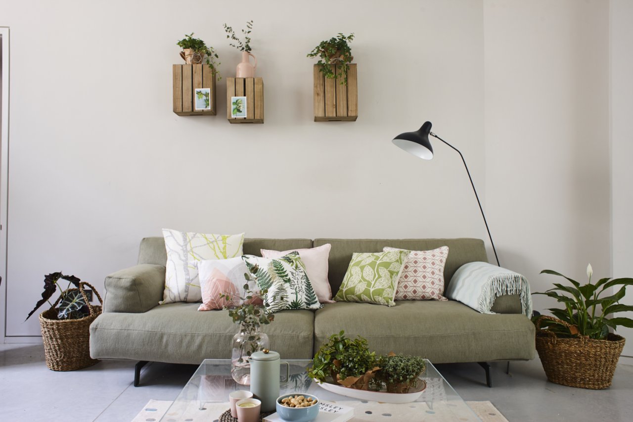 …Pflanzen beleben jeden Raum, sorgen für ein gutes Raumklima und feiern just ein Revival in Töpfen wie auch als Dessin auf Kissen…